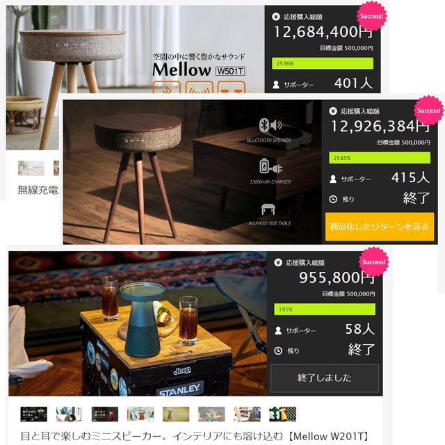 「テーブルスピーカー」Mellowで有名なライフスタイル家電ブランド、ベレー(welle)が今回は少し面白い製品でマクアケを訪れました。