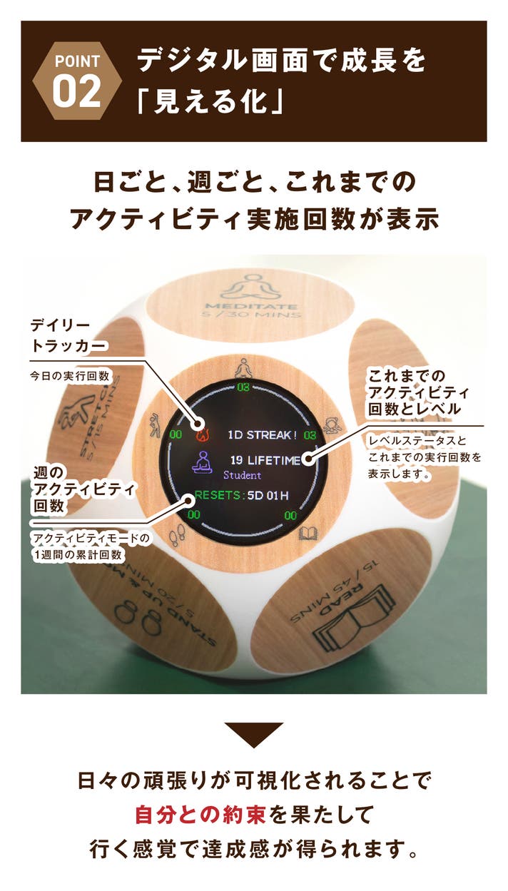 - 【シンプル&スマート設計】開始したいアクティビティの面を上に置くだけでタイマースタート!