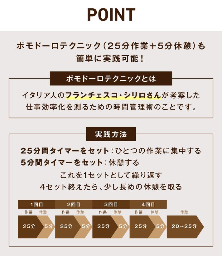 - 【作業タイマー】5つの固定タイマーモードで仕事・勉強のタイムマネジメントにも使える!