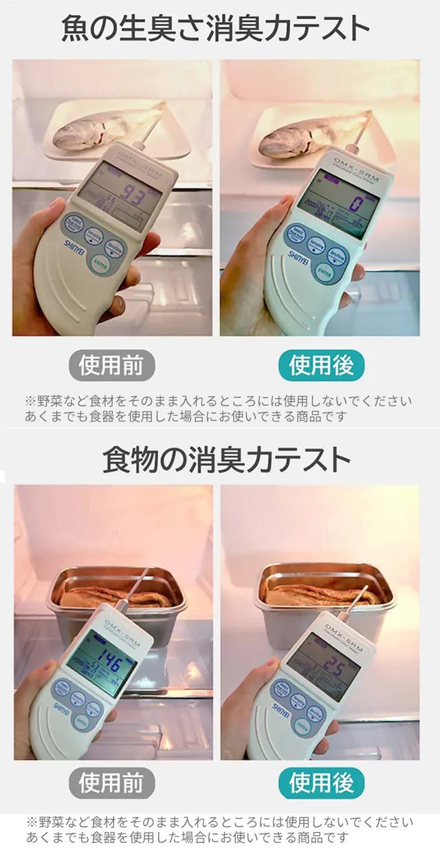 冷蔵庫に流れた汚染物を吸収し、各種食品の匂いを吸着します。
