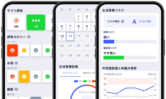 ②糖・脂肪のケアができる(※)ターミナリアべリリカ由来没食子酸を配合した機能性表示食品「糖脂サプリメント」が一体となった、革新の生活習慣リスク対策プログラムです。