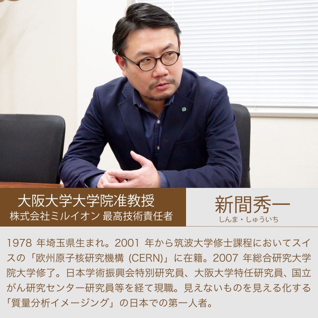 中性脂肪と血糖値を見える化する「糖脂分析キット」の開発には「質量分析イメージング」の権威、大阪大学大学院の新間秀一准教授が参画。科学的な知見に基づいて開発しています。