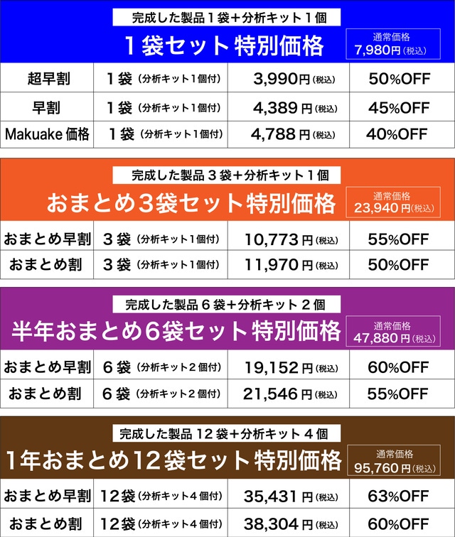 【半年おまとめ早割】60%オフ 完成した製品6袋+分析キット2回分つき