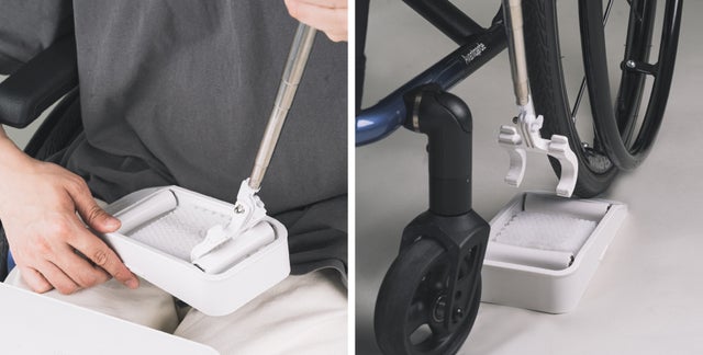 このような経験を聞いたことをきっかけに、車椅子を使う方がどこにでも簡単に移動できるように簡単にできる車椅子用のお掃除クリーナーを開発することになりました。