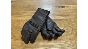アウトドア用のレザーグローブを、バイク用グローブとして利用している人。