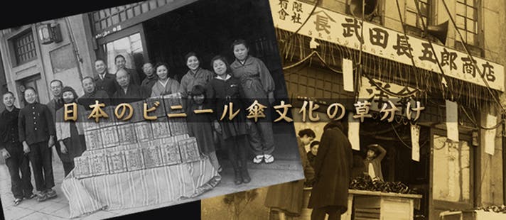 享保六年(1721)、武田長五郎商店として創業。その後、煙草保管用油紙を利用して雨合羽を考案し参勤交代の大名行列に採用され雨具店に転身。 明治期には人力車の帆や天幕も扱い、従来の和傘に加え、洋傘も製造販売した。 昭和25年、シベリア抑留から帰国できた9代目 須藤三男(前社長)が進駐軍の持ち込んだ「ビニール」に着眼し、当時の綿傘の上にかぶせる完全防水用「傘カバー」を完成。その後、昭和27年〜33年に世界に先駆けて「ビニール傘」を発明・完成させました。 当初の「ビニール傘」の販売は困難を極めましたが、1964年の東京のスポーツの祭典を機に米国輸出で評価され、国内販売も加速したのです。 昭和40年代透明ビニール傘を開発。その後ビニール傘は価格競争のためほぼ海外製になってしまう逆境の中、平成22年園遊会で初めてご使用いただいた「逆支弁機構」を完成させました。現在国産ビニールメーカーとして職人を育成しております。