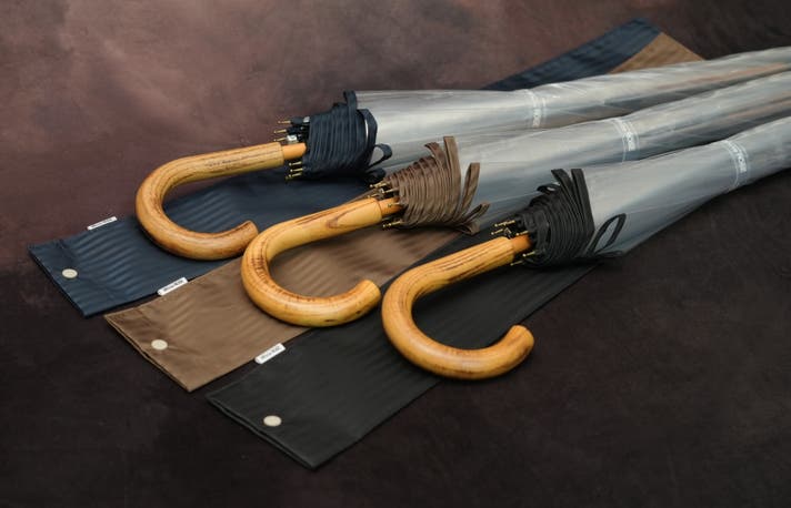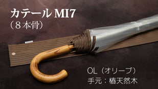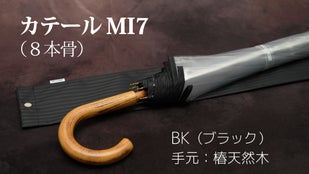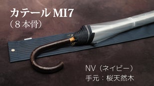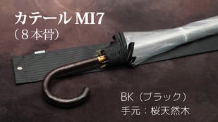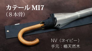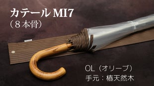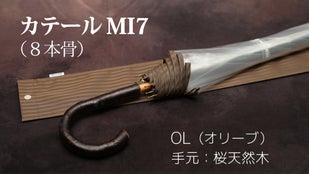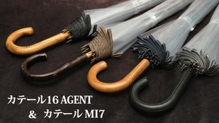 今回は、 Makuake特別バージョンの牛革手元と椿手元の16本骨「カテール16AGENT」と、椿手元と桜手元の8本骨の「カテールMI7」の2種類の傘をご用意。それぞれの手元をお選びいただけます。