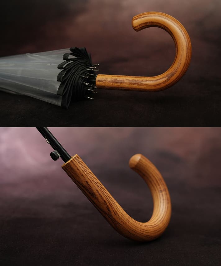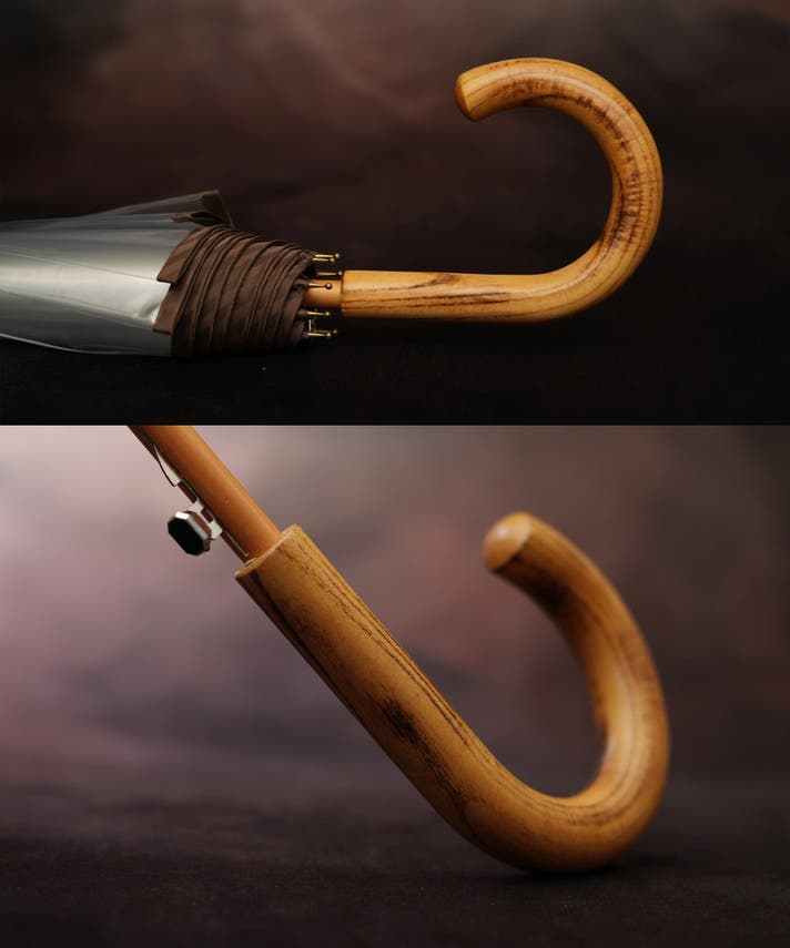 天然木の質感と逆支弁付きで強風にも耐えられる設計で、強さの中にも気品溢れる紳士淑女の為の上品な傘に仕上がりました。