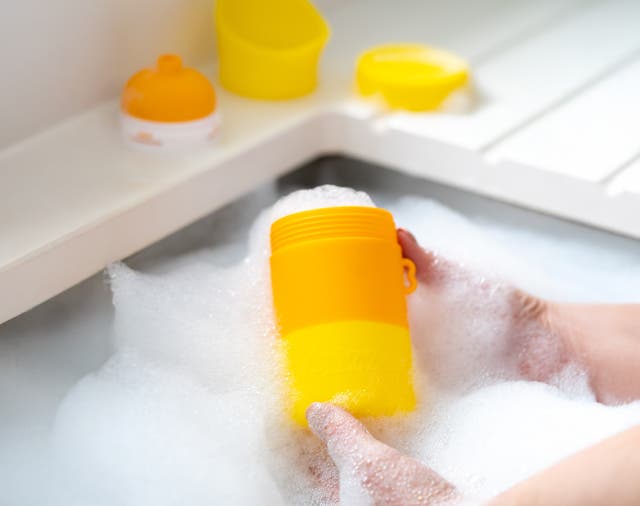 中身を空にしてすぐにすすげば、注ぎ口を容器に戻してそのまま保管することも可能です。