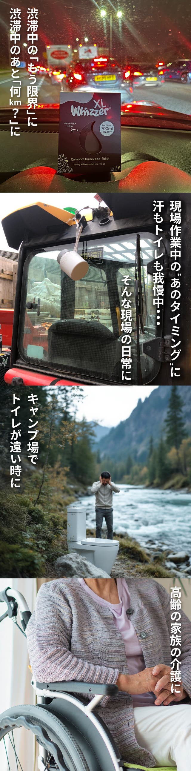 - 【渋滞や長距離の現場】でも使える、男のための【携帯トイレ】。もう我慢はいらない、【頼れる相棒】