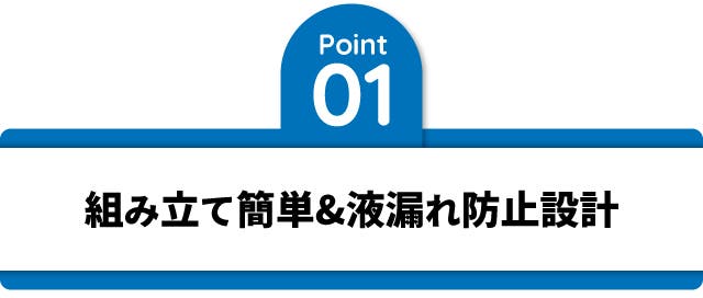 内部の漏斗構造により液体がスムーズに収まり、満杯になっても液漏れしにくい設計です。