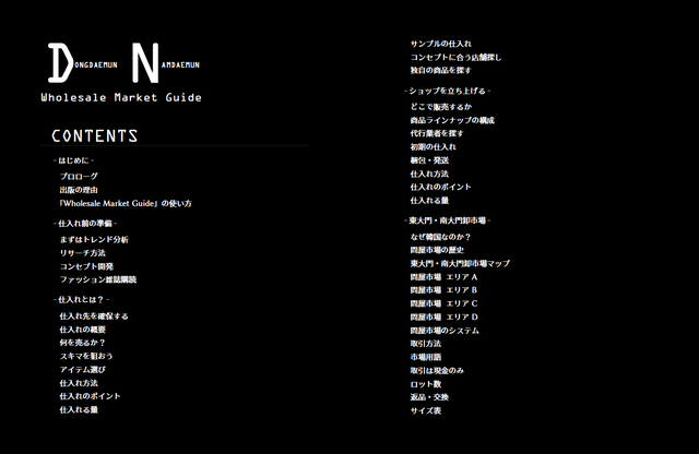 数年にわたり、日本人向けに韓国輸出入の教育をおこなってきたプロフェッショナルである著者が、東大門・南大門の仕入れ先情報を公開する出版となります。