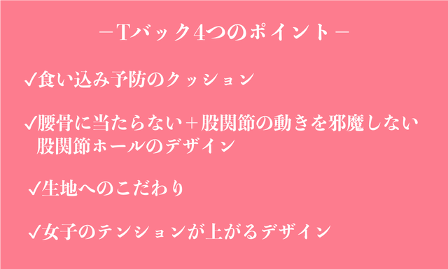 また、クッションのおかげで肌当たりがとても柔らかいため、初めてTバックを履く人でも受け入れやすいものになりました。
