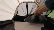 便利な靴収納スペースはメッシュで風通しも良く、嫌な虫などが侵入しないように開閉式を採用、カバーを閉じればテント内への臭い、汚れも防げます。