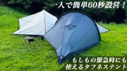 設営も一人で超簡単!付属のポール1本と2本のペグを固定するだけの約60秒で完了!