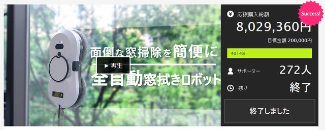 前回プロジェクトの応援購入金額が800万円を突破した全自動窓拭きロボットの進化版を開発しました。「気持ちのいい新年を迎えませんか?」「負担を軽減して、年末はゆっくり過ごしませんか?」年末の大掃除に間に合うように、500台限定年内配送いたします。