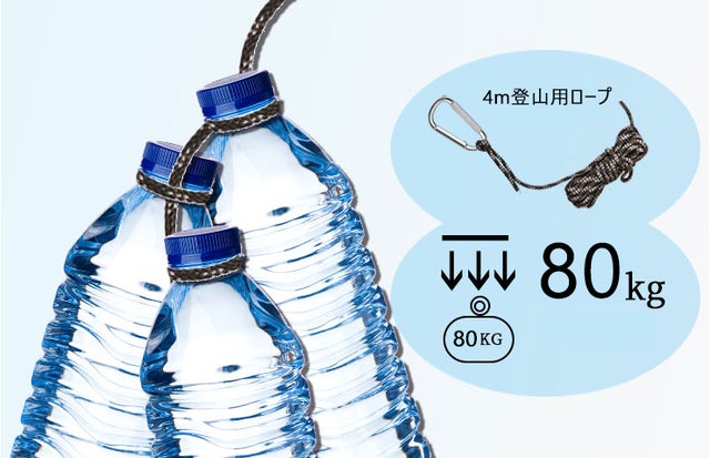 落下防止のため、登山用に使われる安全ロープ(長さ4m、引張力150kg)を付属しています。ご使用前に、安全ロープを常に屋内の固定物体に結び付けてご使用ください。