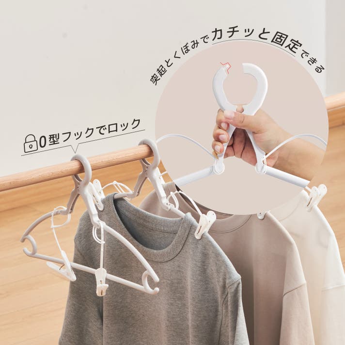 - フックから肩当て部分までを3箇所でしっかり固定。強風の日でもしっかり物干しできちゃう!