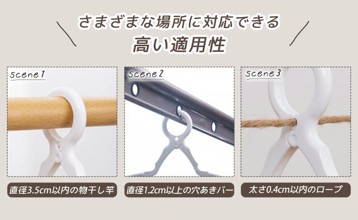 ★ 直径3.5cm以内の物干し竿に対応できます。