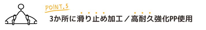 3か所に滑り止め加工を施しているため、衣類のズレを抑えられます。
