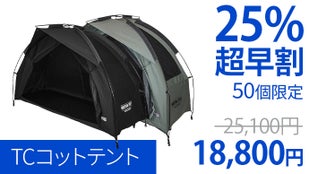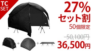 TCコットテントは、スタイリッシュなブラックと自然に溶け込むカーキの2色をご用意しています。どんな場所でも調和するカラーで、キャンプの雰囲気をより一層引き立ててくれます。