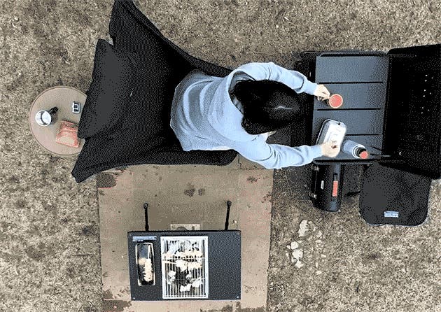 焚火台前での料理、テーブル上のもの取り、後ろにあるクーラーボックスから飲み物出しなど…