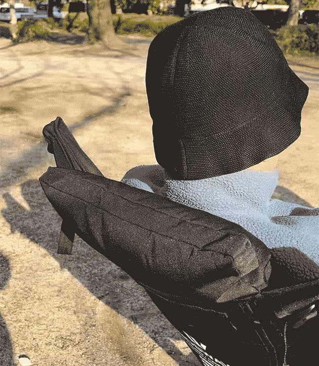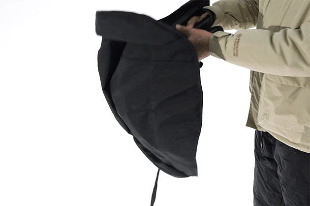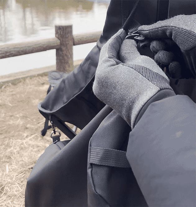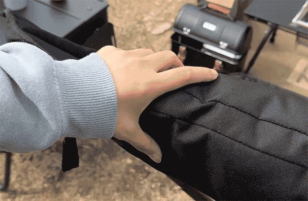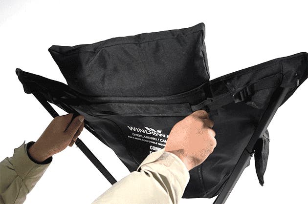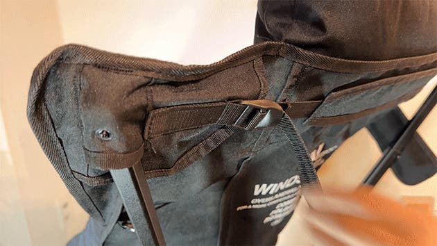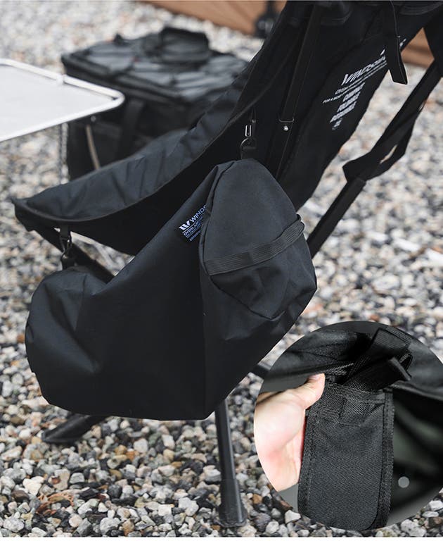 ハイバックチェアの場合、固定用のストラップを側面ポーチに収納できます。