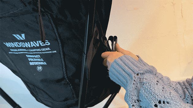 WINDSWAVESのスイベルチェアは使用しないときはコンパクトに折りたためます。