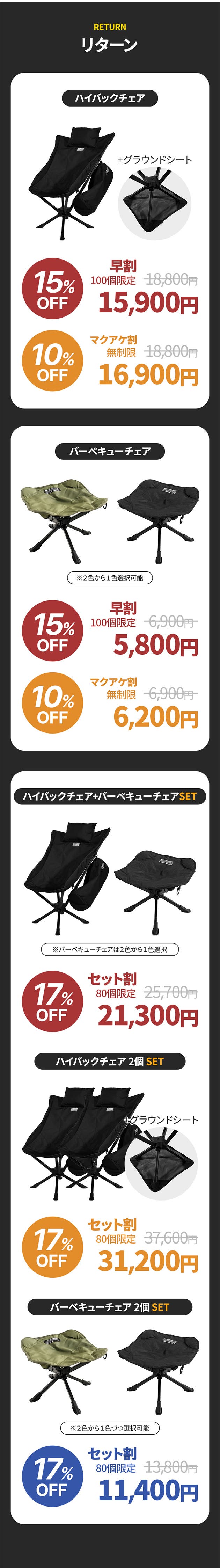 【セット割】ハイバックチェア バーベキューチェアSET