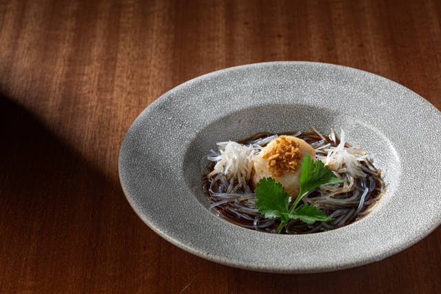 アジアの酸味に中華の渋みを掛け合わせた一皿は、みずみずしい酸とタンニンが立つオレンジワインにとてもよく合います。