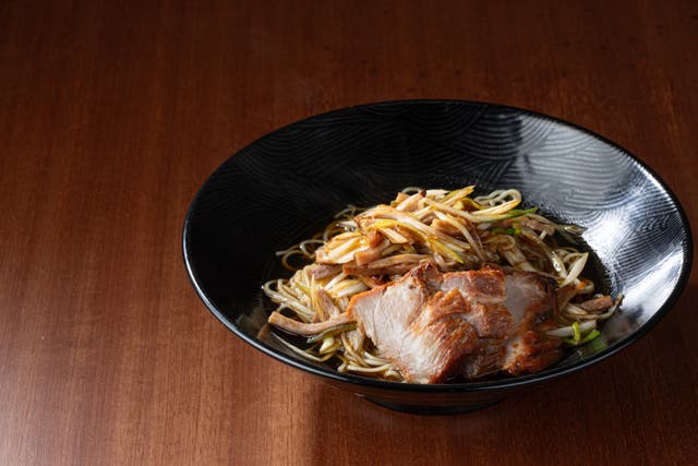 皆川が30年かけて作り上げた中華そば。広東の伝統を研究し、完成しました。甘辛く炒めた葱とさっぱりとした醤油ベースのスープが良く混ざりあい、絶品の一品になっています。ニンニク香る自家製ラー油をかけて味の変化を楽しみながら、召し上がっていただくスタイルも非常におすすめです。