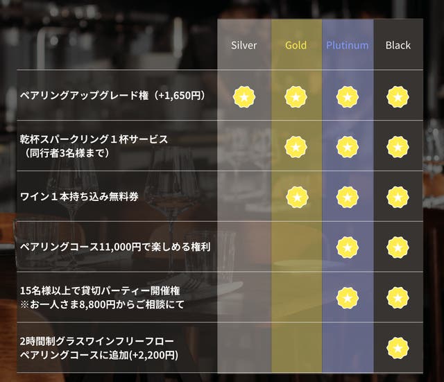 4. ペアリングコースを11,000円(税込)で楽しめる権利(Platinum以上限定)