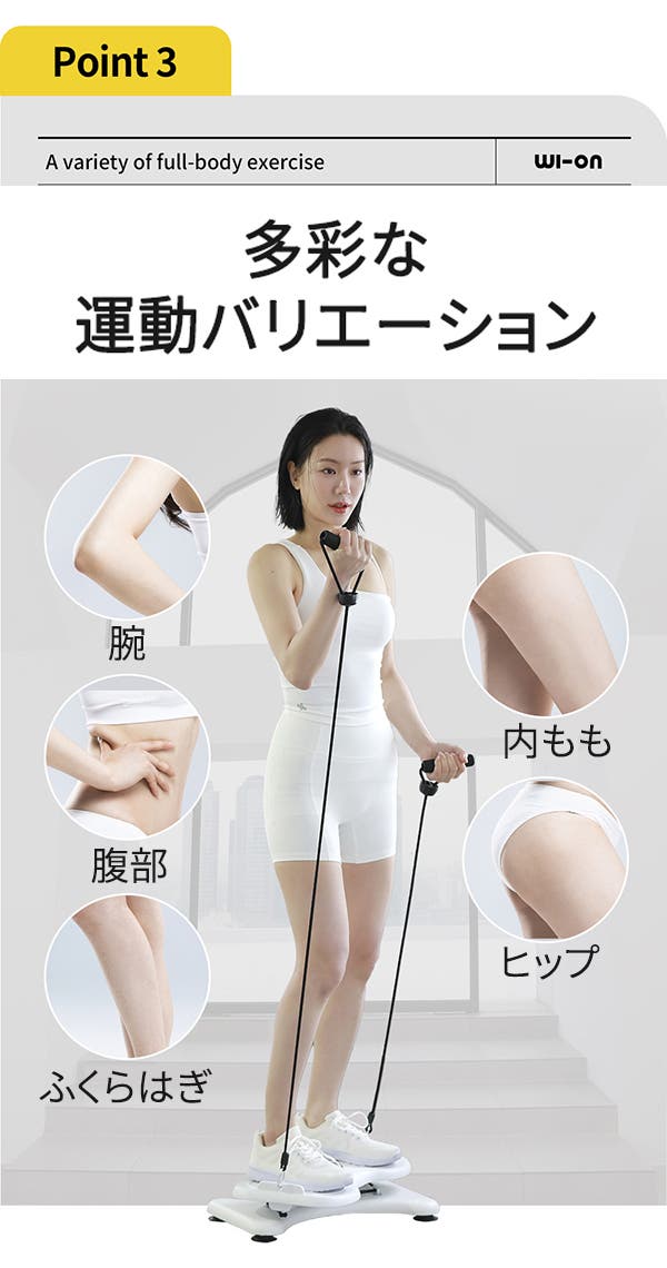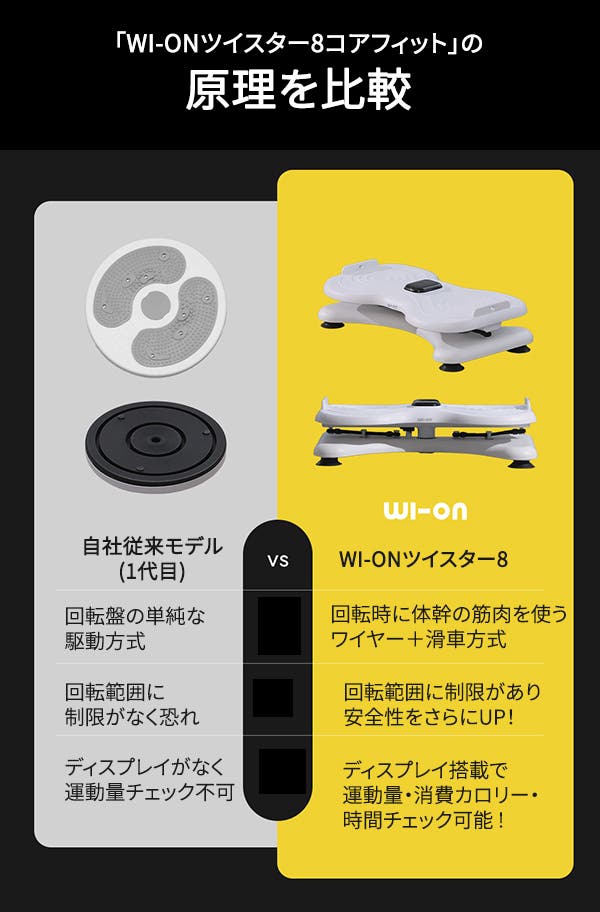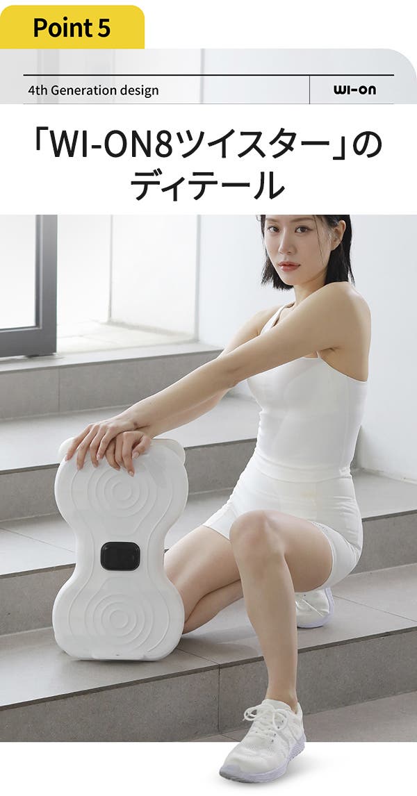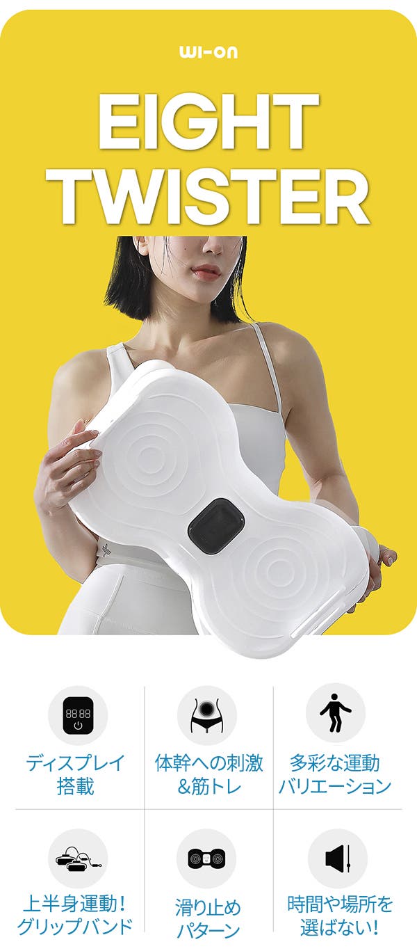 当商品は次世代ツイスター運動器具であり、簡単なエクササイズで脂肪燃焼や有酸素運動、筋トレなど初心者でも簡単で安全にトレーニングでき、筋肉に心地よい刺激を与えることができます。老若男女誰でも安全で簡単にエクササイズが楽しめるよう多くの試行錯誤を経て、「WI-ON8ツイスター」が誕生しました。