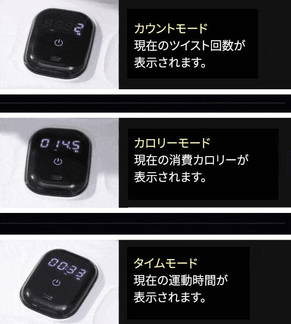 - ディスプレイで回数・時間・カロリーを見える化し、効率的に管理!