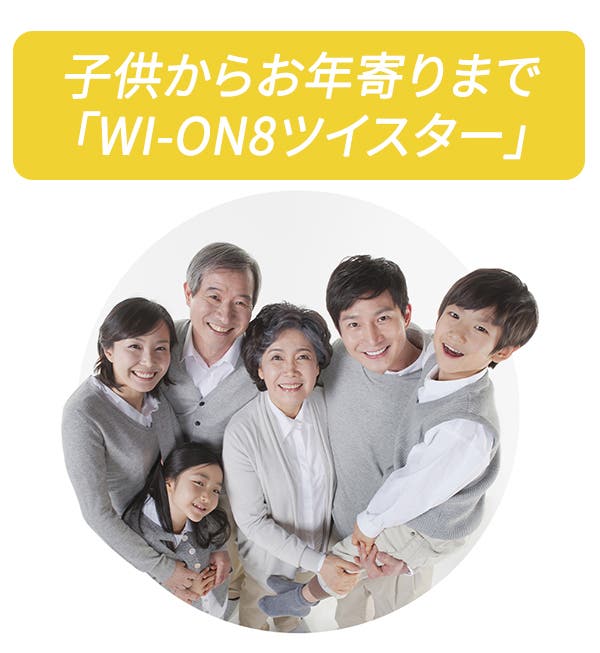 全身ツイストを繰り返せば、短時間で圧倒的な運動量を実感できます!「WI-ON8ツイスター」なら子供からお年寄りまで自分に合ったスピードで気軽に全身有酸素運動ができます。子供から大人まで家族みんなでツイスト!簡単なエクササイズで子供から大人まで家族全員で楽しめます。