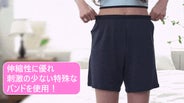 自社独自の特殊高弾性バンドは長時間着用しても伸びにくく、ゴム跡が残らないのが特徴。また、お肌への刺激を防ぐため、ケアラベルは転写プリント方式を採用しています。