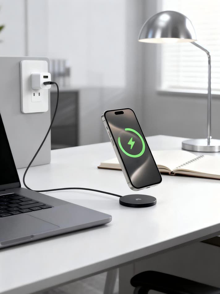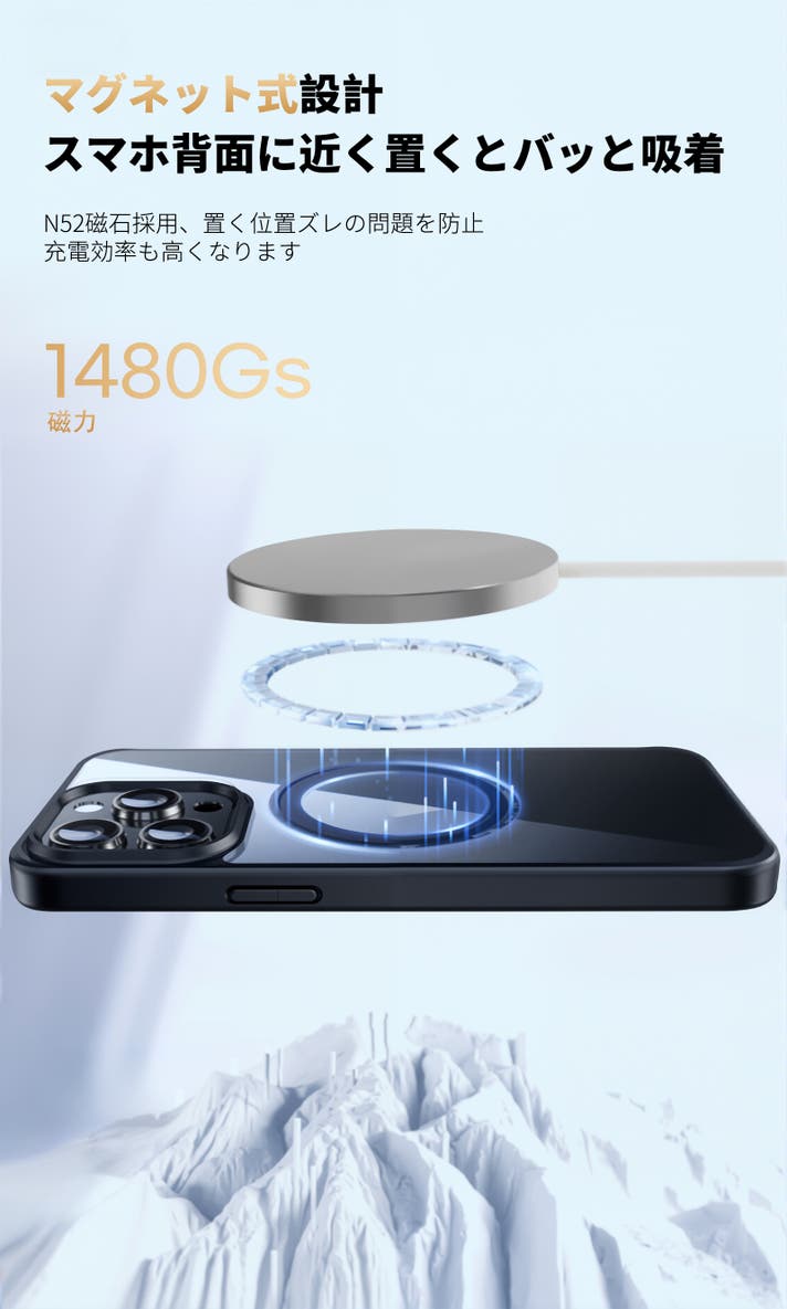 強力なマグネット式設計により、スマホ背面にぴったりと吸着し、充電中にズレたり外れたりする心配は一切ありません。わずかに近づけて軽く一貼りするだけで、しっかりと固定され、充電が開始されます。