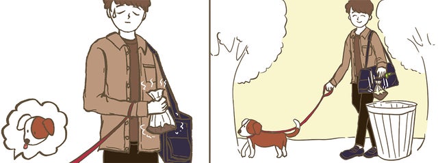 ペットとの散歩の途中も排泄物を別途保管しなくても⼤丈夫です。ペット⽤バッグのポケットに差し込むだけでOKです。