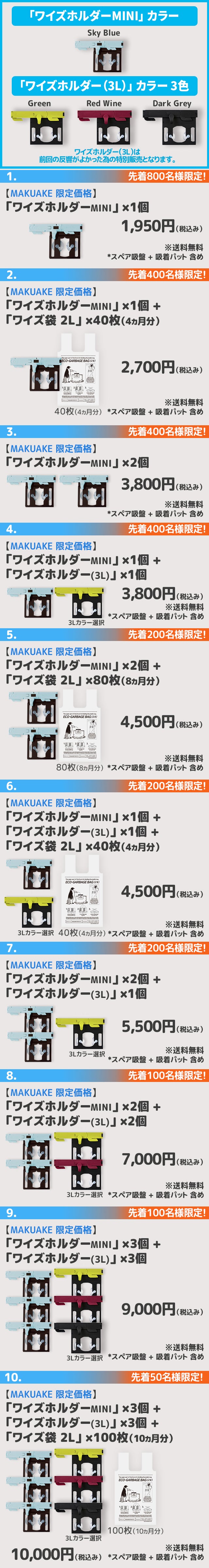 【MAKUAKE】「MINI」×3個 「3L」×3個「ワイズ袋 2L」×100枚
