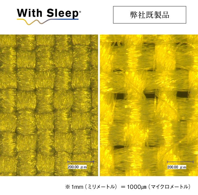 With Sleep®の掛け布団、敷布団、枕で使用する外生地には、帝人フロンティアの技術で作られた高密度織物を採用。