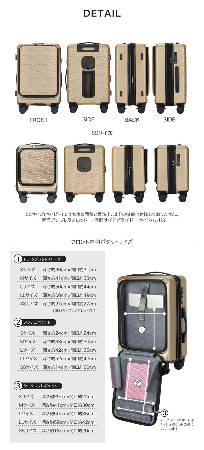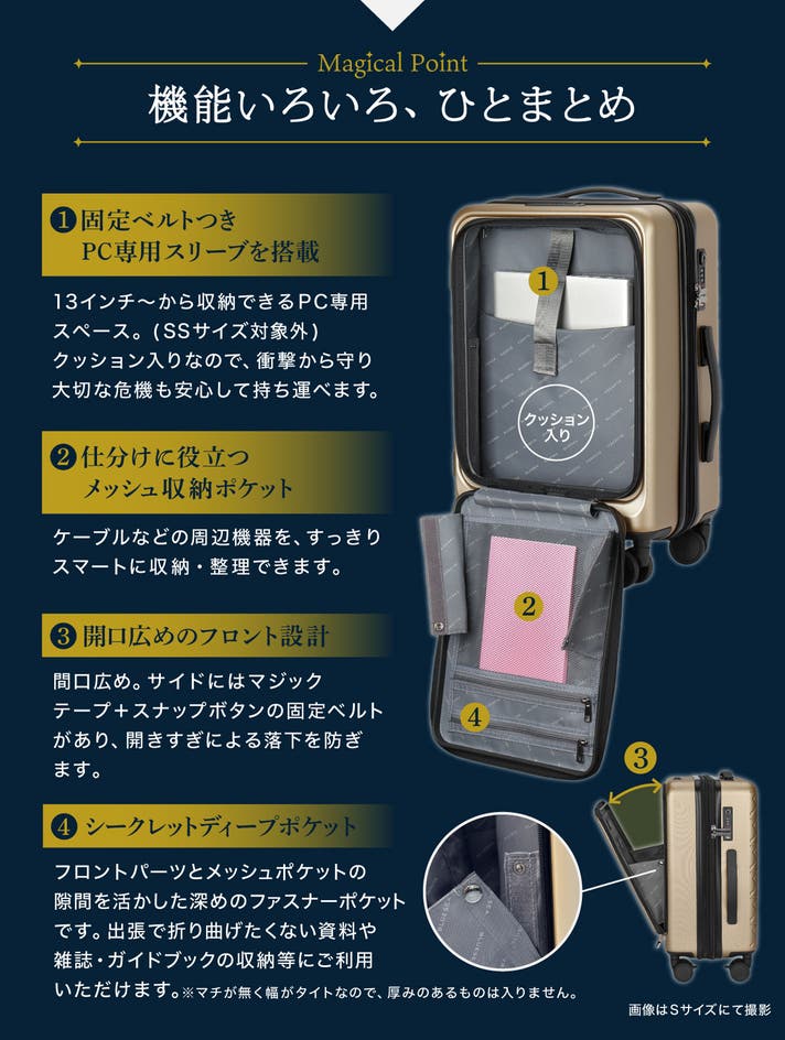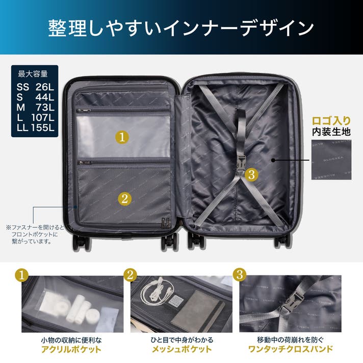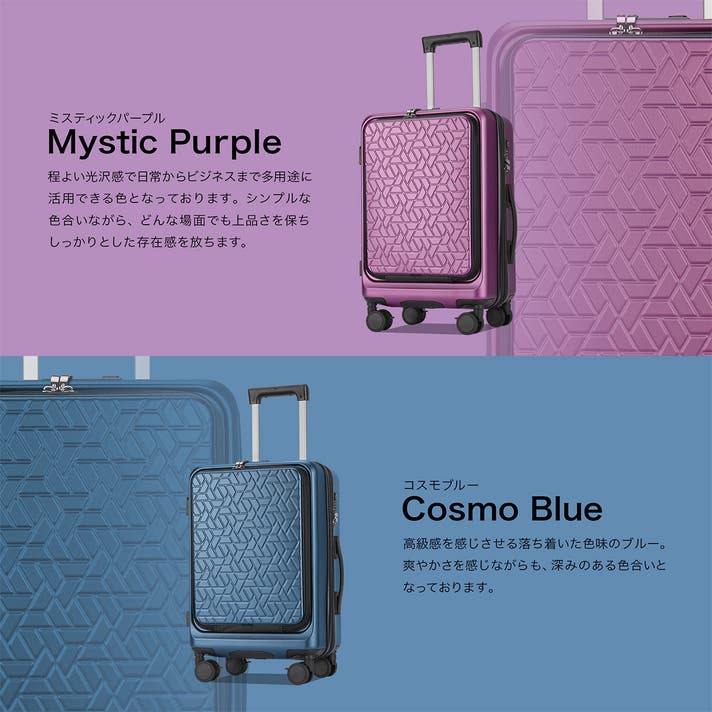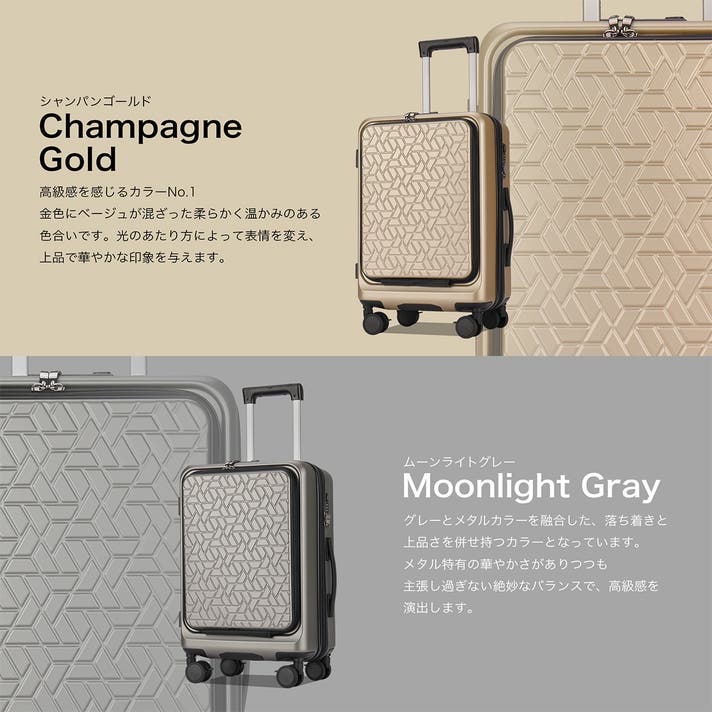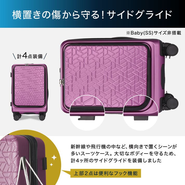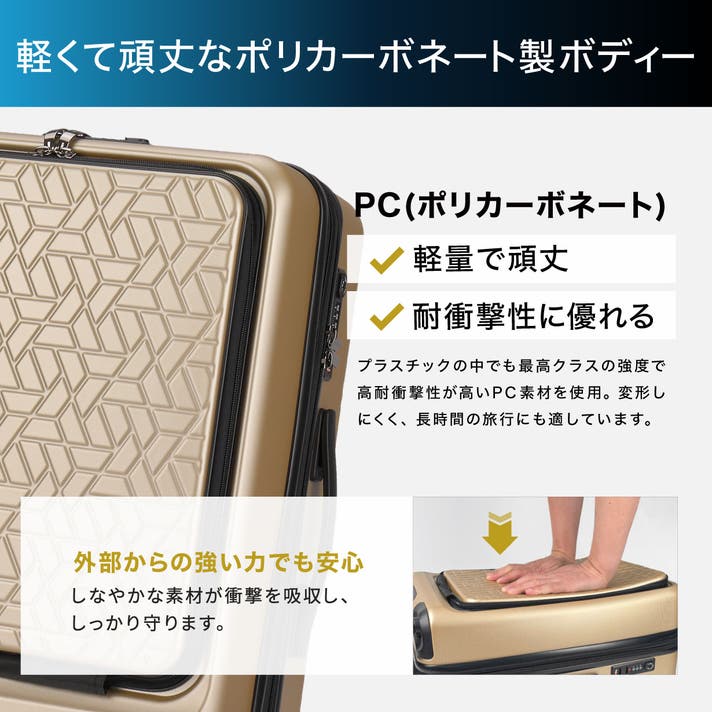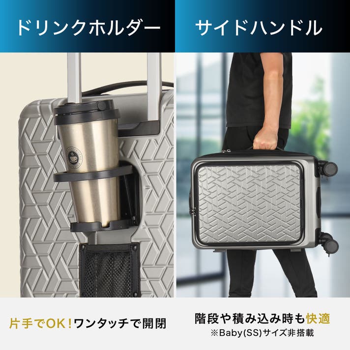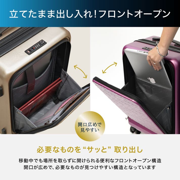 - 欲しい荷物をすぐに取り出せる、フロントオープン型の設計。旅をより快適に、そして効率的に。