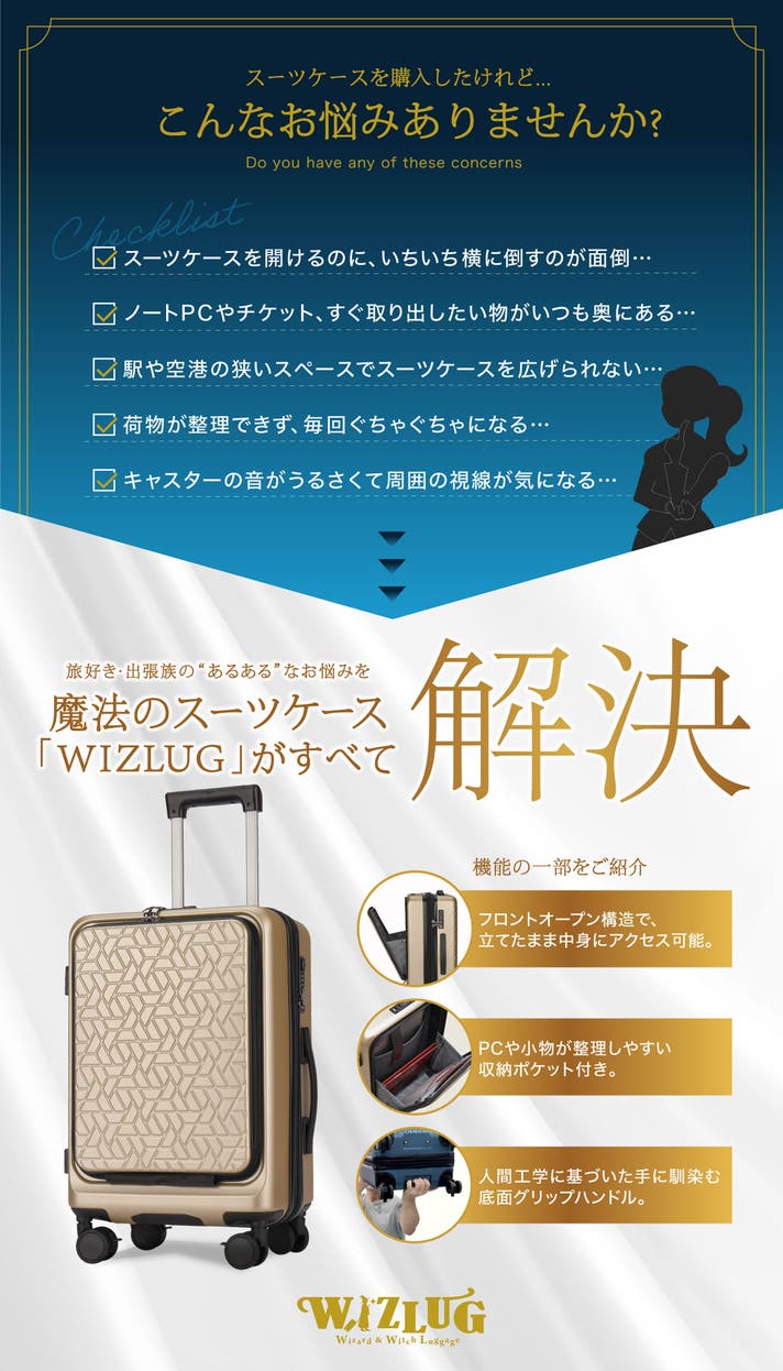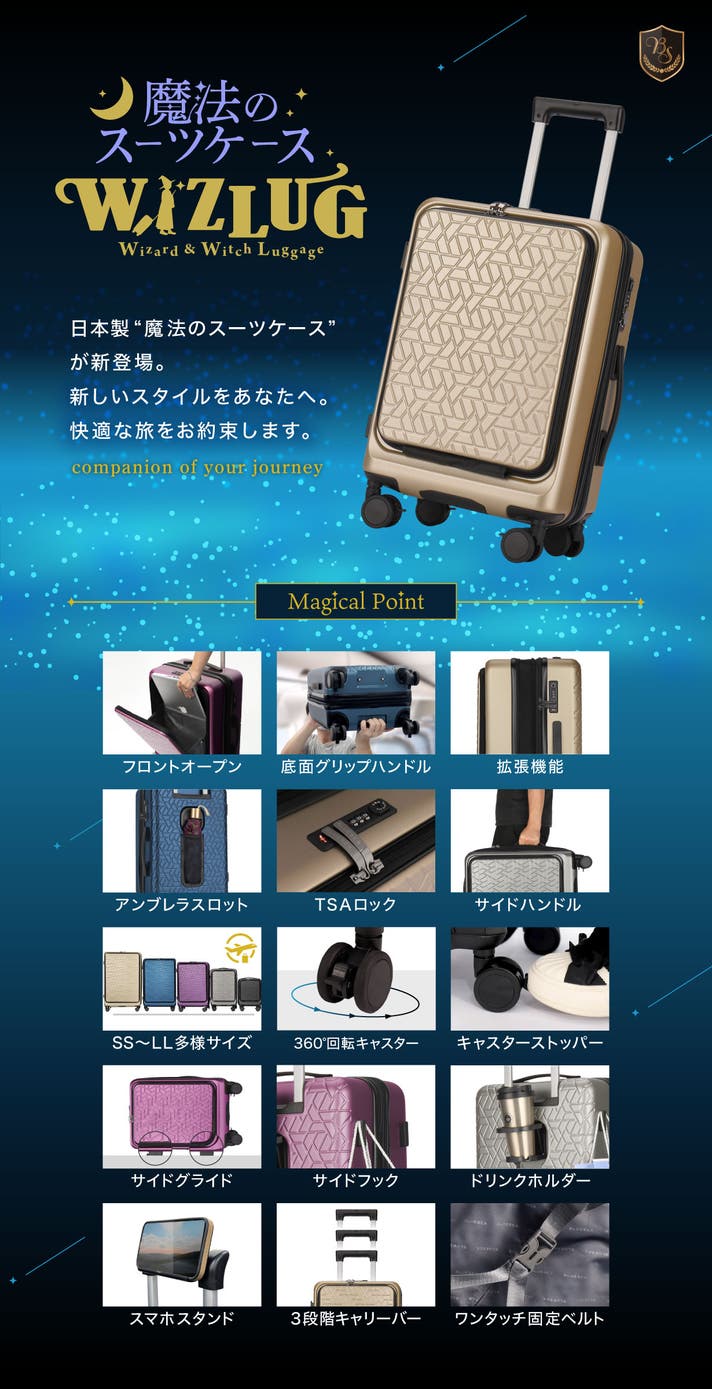 - 旅のストレスをなくして、あらゆるシーンで活躍する『魔法みたいに使いやすい、日本製スーツケース』