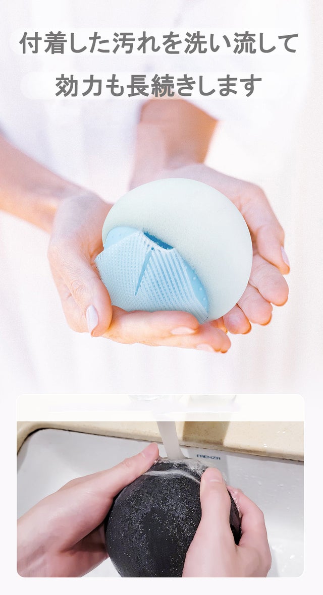 洗濯ボールの効果は縦型やドラム式など、洗濯機の種類によっても異なることがありますが、本製品は主流の縦型とドラム式に両方対応し、洗濯機の中にぽいっと洗濯物と一緒に放り込むだけで効果を発揮します。