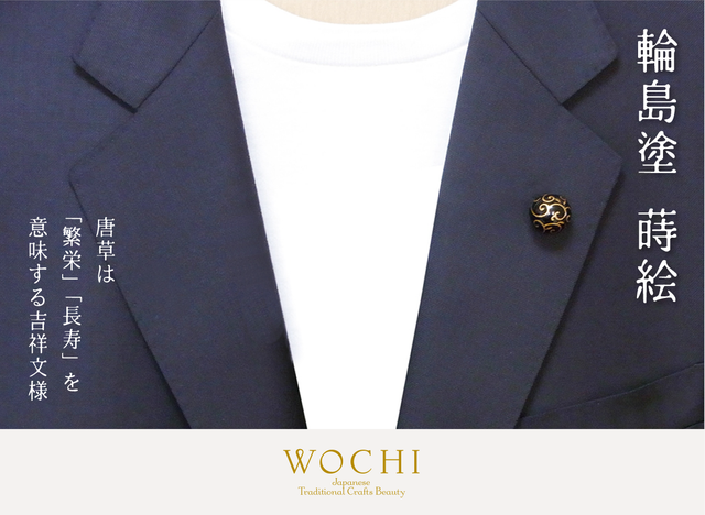 輪島塗 黒漆・蒔絵「唐草」ピンブローチ