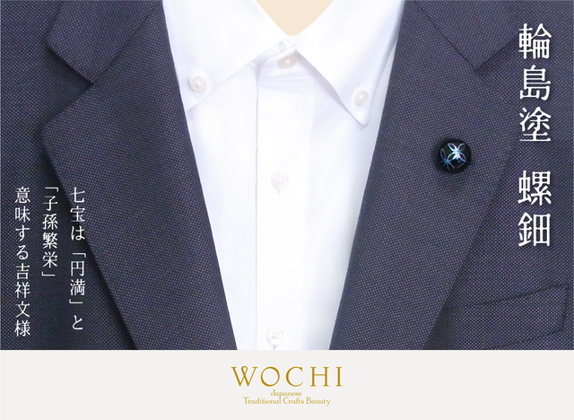 輪島塗・螺鈿「七宝」ピンブローチ