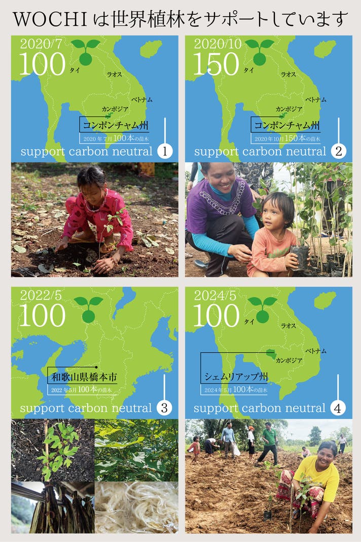 WOCHIでは、売上の一部を植林活動などの環境保全活動に寄付しています。