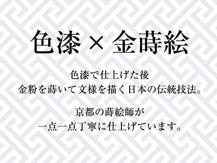 - 色漆や蒔絵など日本の伝統技法で匠が仕上げる一点もの