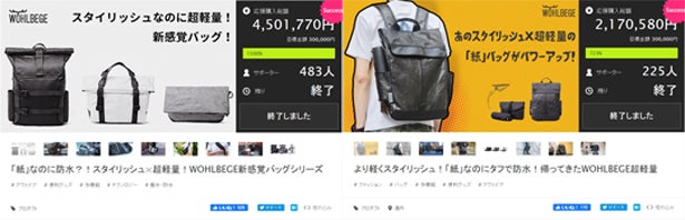 応援購入金額は第一弾が450万円、第二弾が210万円を突破しました。