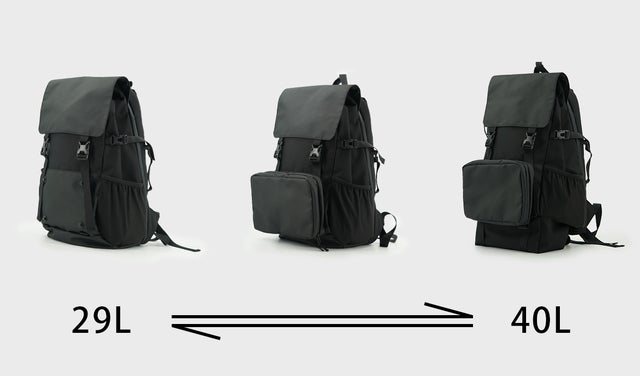 3-in-1の適応可能な設計は29Lから40Lのバックに変化させることが可能です。