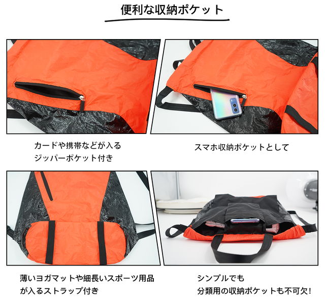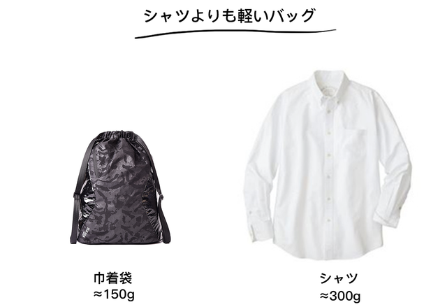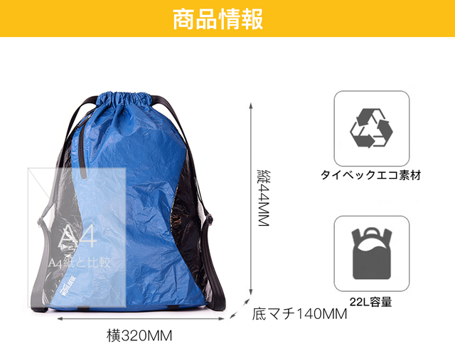 - 特殊な紙素材でナップサックは重さわずか0.15kg